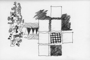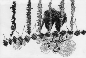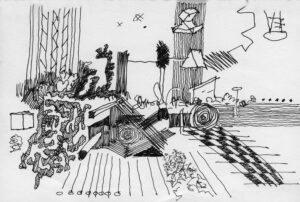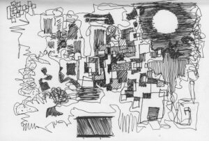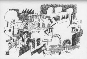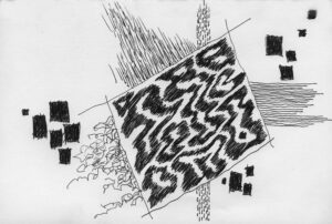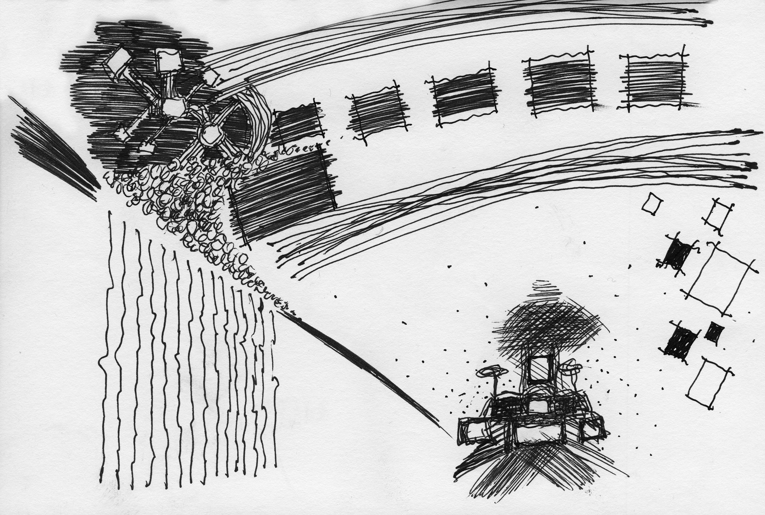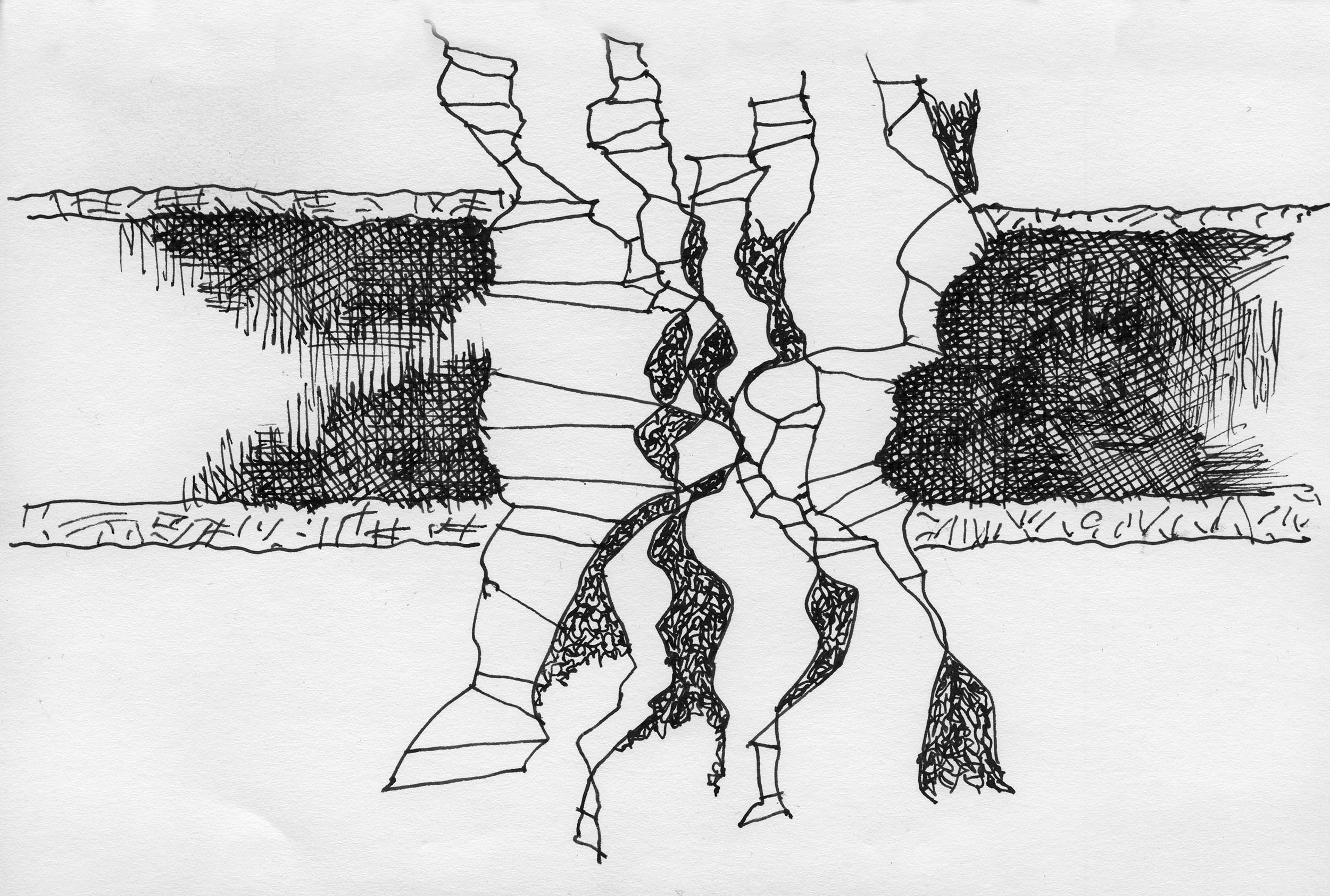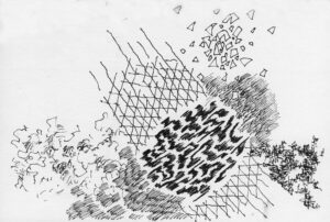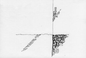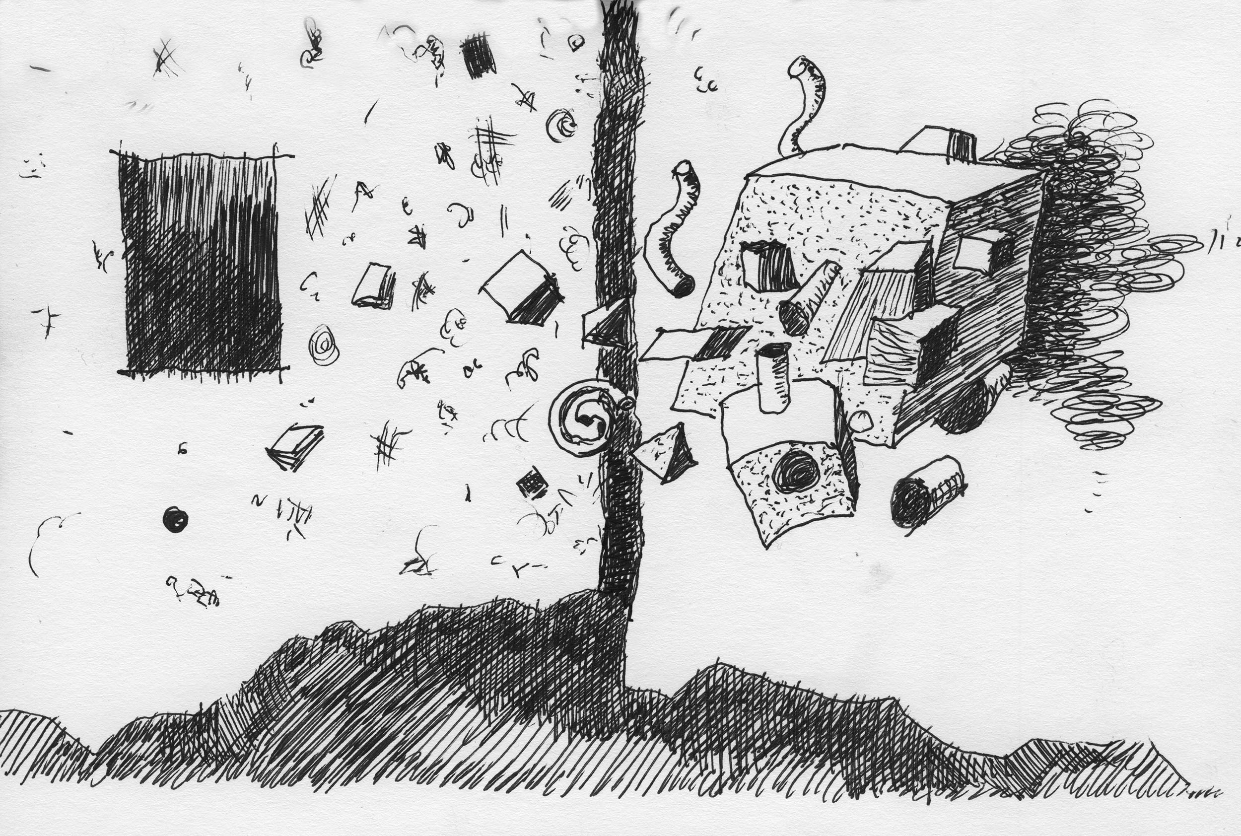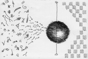 En lång serie tuschteckningar som jag gjorde ihop med min vän Stig. Han hade skrivit en lång text om Naturvetenskapens tid (som han inte vill ha publicerad här). Jag tyckte det var spännande att teckna fritt utifrån dessa texter.